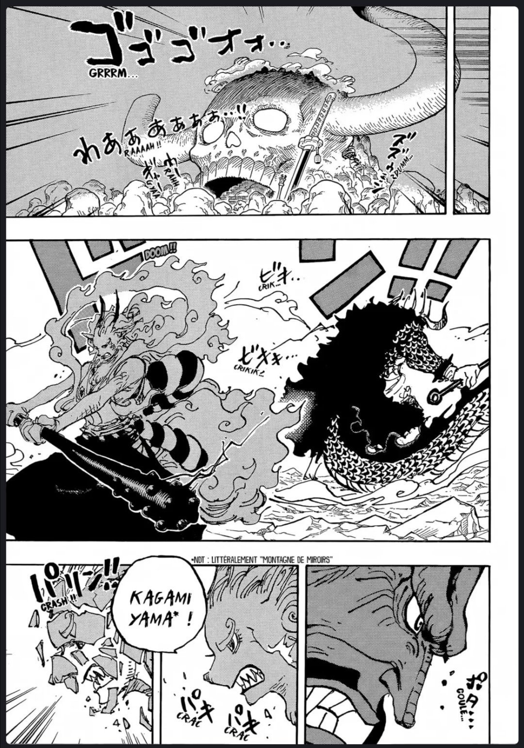 Kaido se balade même dans le château pour buter Momo sans aucune blessure, saignement et cicatrice