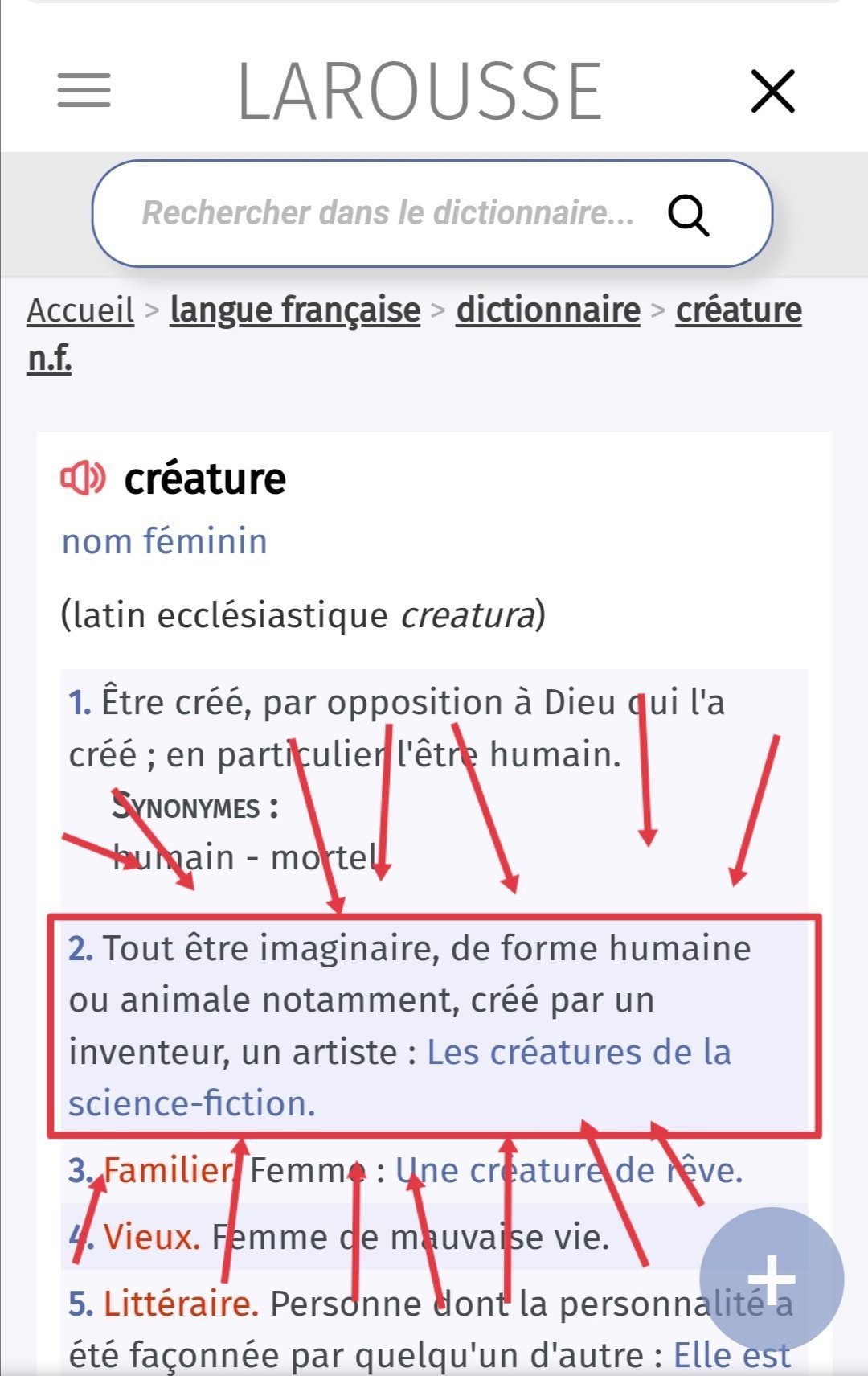 Donc la 1ère définition n'est pas correcte.La deuxième définition dit : être imaginaire de forme humaine ou animale.