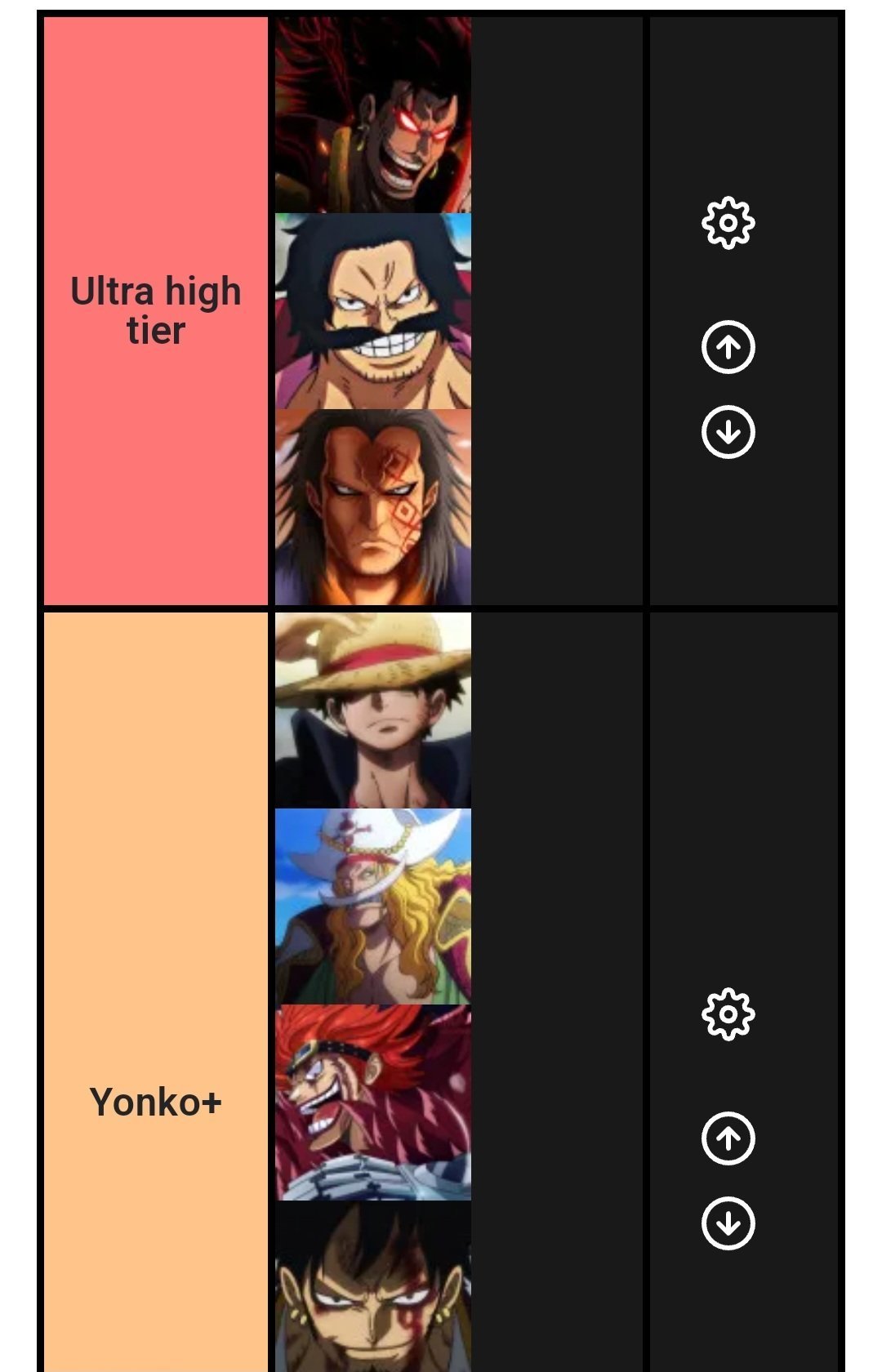 La seule tier list valableAyyaaa t'a vraiment mis big mom dans le même tier que doffla
