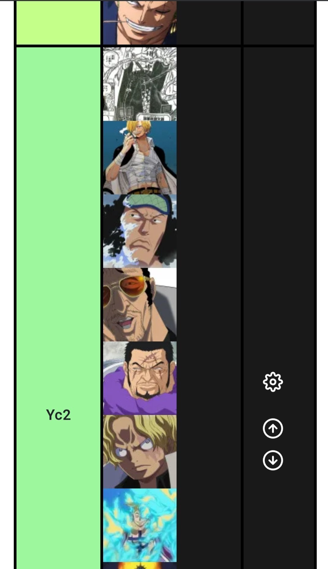 J'ai mis des amiraux en dessous sanji car sanji=plus rapide que la lumière donc > à kizaru et kizaru=aokiji=fujitora