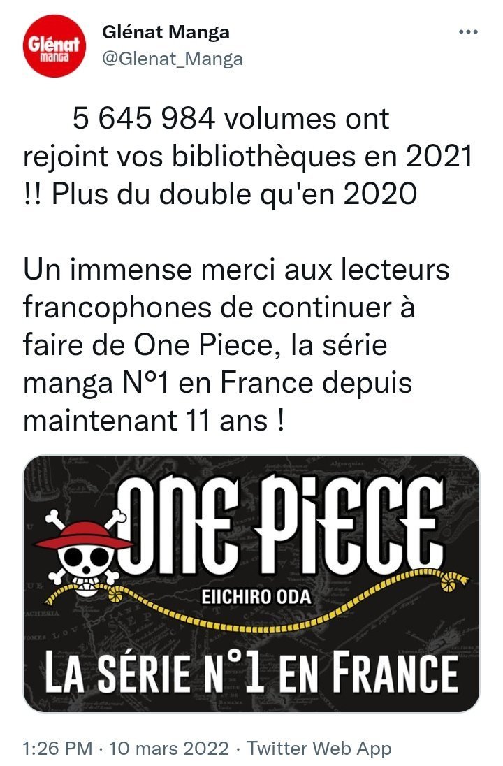 En 2021, s'impose comme le manga le plus vendu en France. Après 24 ans de publication