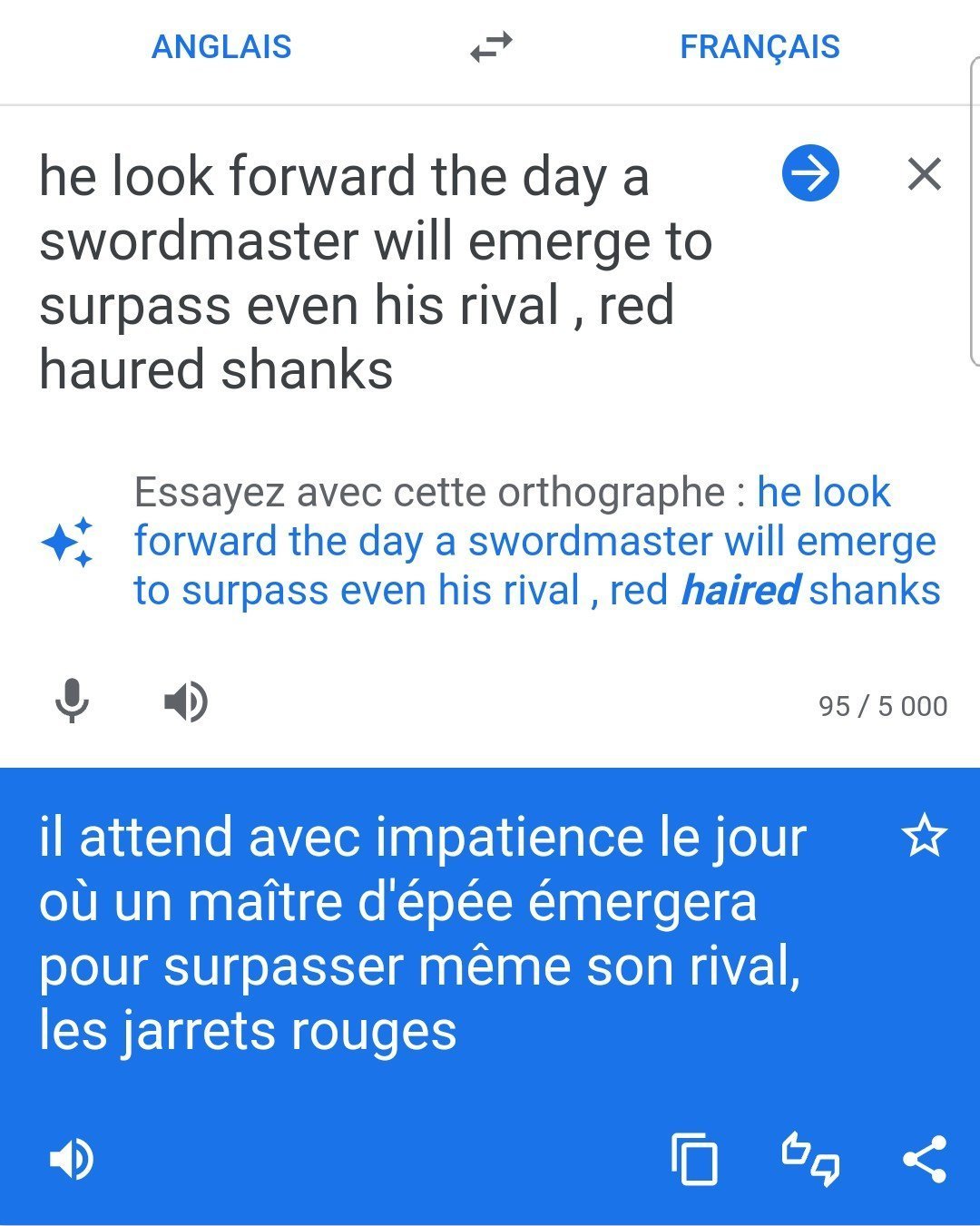 Et j'ai pris comme base "célérité = 1000 * vitesse du bateau de Luffy", ce qui semble super faible comme écart. Si quelqu'un veut prétendre que l'écart est plus faible que ça va falloir qu'il ou elle me dise aussi son estimation de : la vitesse de Luffy pré ellipse sans gear, avec gear, celle de Ener, celle du Soru, ... relativement au bateau de Luffy