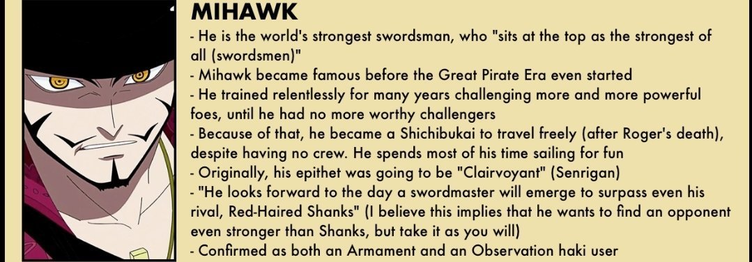 Mihawk est autant un maître du haki que shanks si ce n'est plus.
