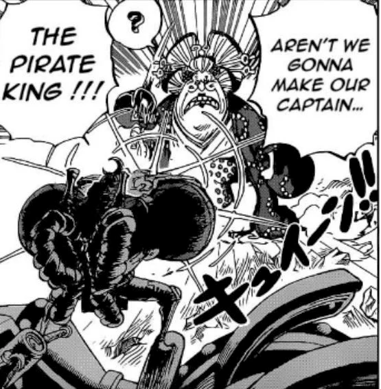- Roue arrière + radical beam sur la gueule de big mom en lui disant que Luffy sera roi des pirates
