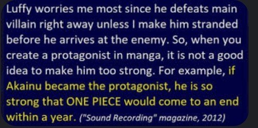 Oda dit lui meme qu'Akainu est tellement fort qu'il pourrait chopper le One piece en 1 an. Chopper le one piece = trouver tous les roads poneglyphes. Or les road poneglyphes sont gardes par des Yonkos donc chopper le one piece = battre les yonkos.