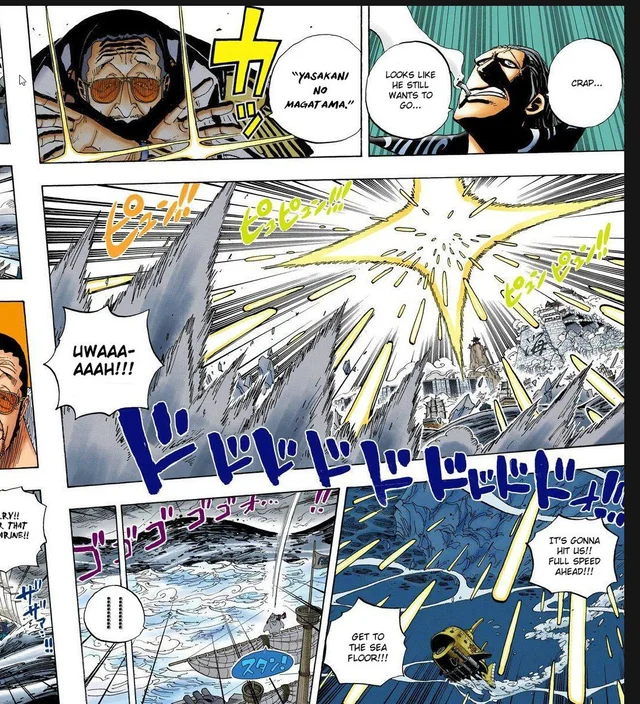 Suffit de voir l'attaque que Kizaru fait sur le sous marin de Law, il a rien fait de tel à marineford à part envoyer des petits lasers