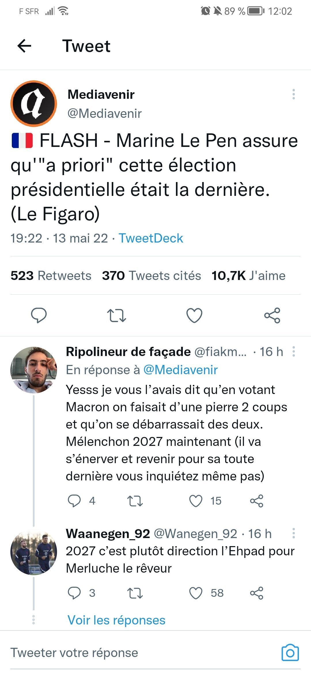 Le 14 mai 2022 à 12:06:47 : C'est plutôt les gauchistes qui ont du souci à se faire. Il n'y a personne pour succéder à Mélenchon et la LFI va surement se diviser en plusieurs partis.