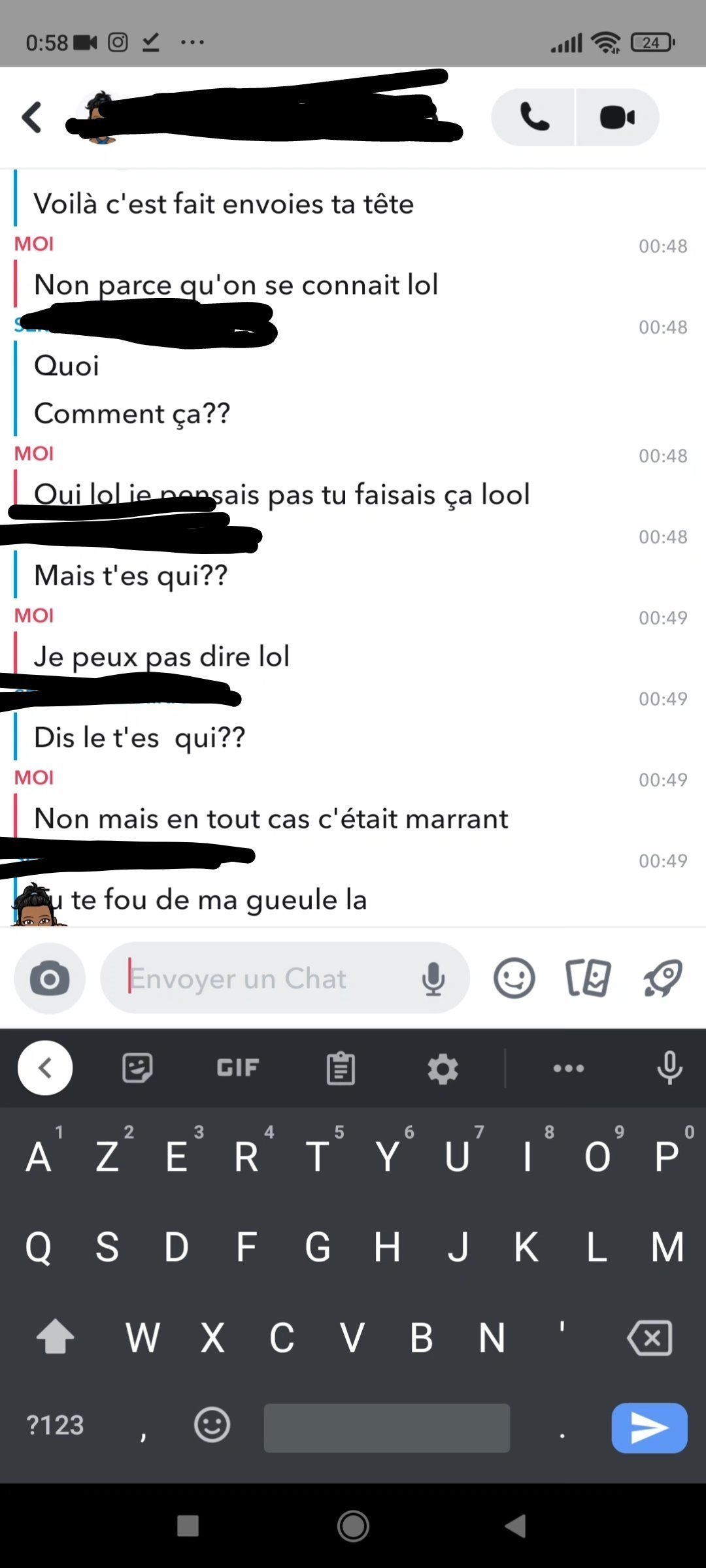Bon en gros je lui ai demandé son snap pour avoir des photos, elle m'a envoyé des vocaux où elle dit qu'elle veut me sxcer etc..