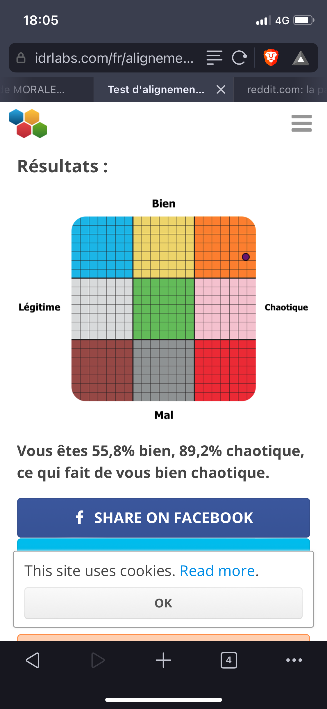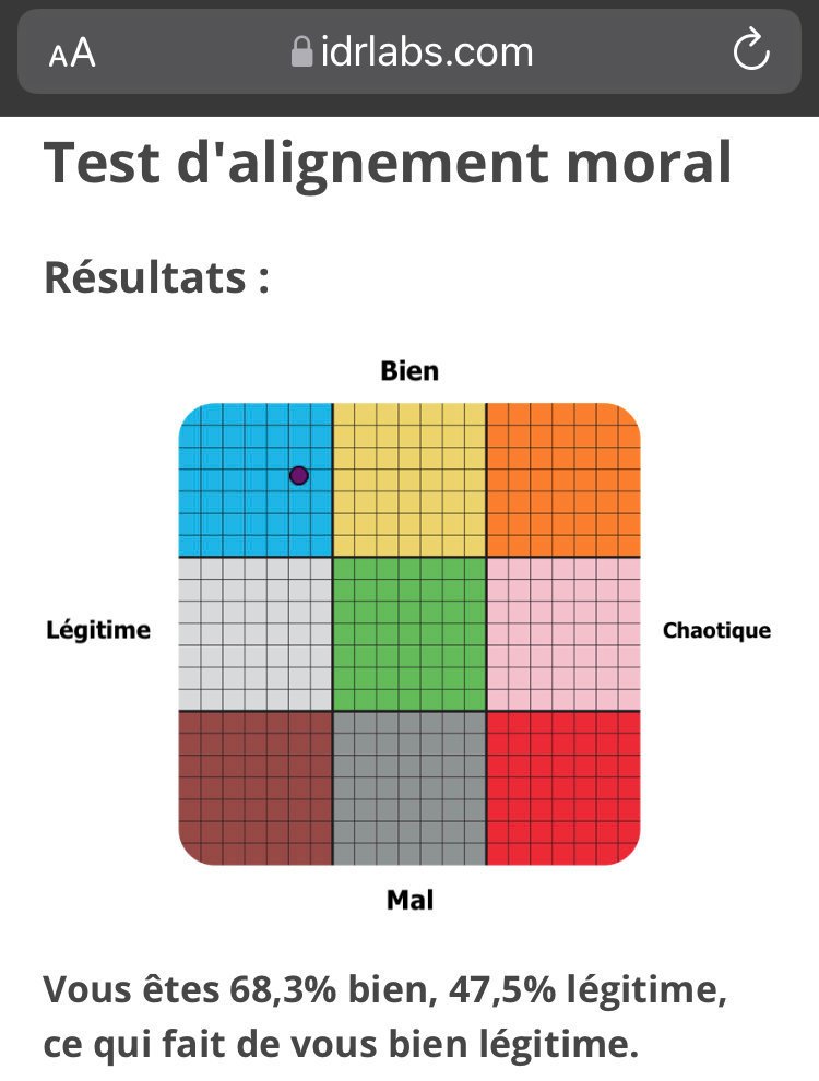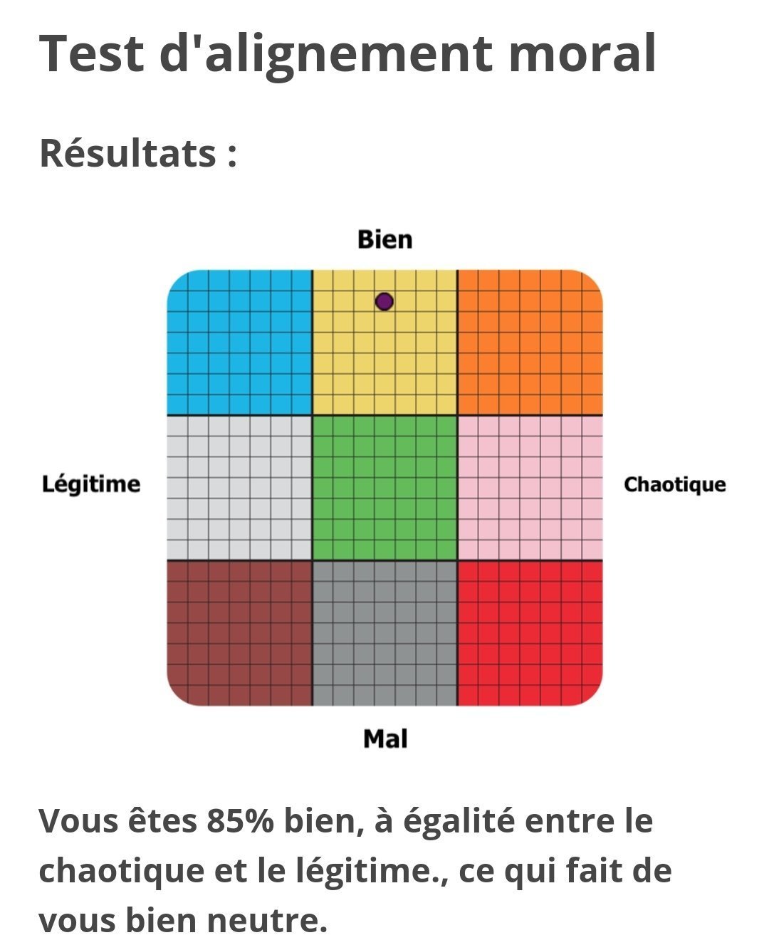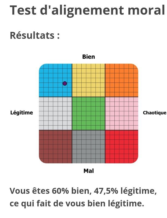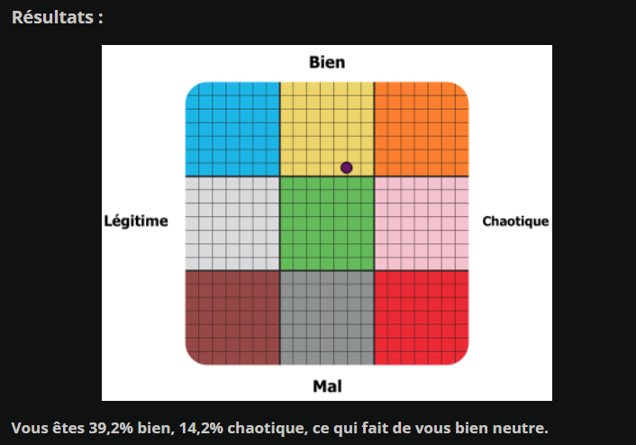 Vous êtes 39,2% bien, 14,2% chaotique, ce qui fait de vous bien neutre.