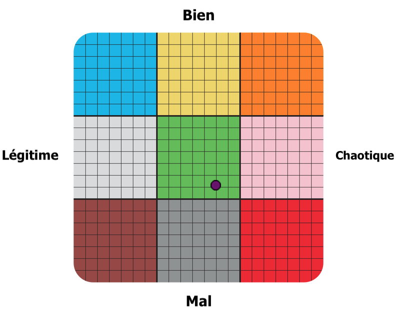 Les personnes correspondant au Bien Neutre sont guidées par leur conscience et agissent généralement de manière altruiste, en ne se souciant que secondairement de savoir si leurs actions sont légales ou conformes aux attentes culturelles ou aux traditions. Les individus Bons et Neutres n'ont aucun problème avec ce qui est légal en tant que tel, et ne sont pas non plus des rebelles par nature, mais ils croient en la diffusion de la bonté et des bonnes actions par tous les moyens qui leur semblent nécessaires. Si favoriser le bien signifie soutenir une société organisée, alors c'est ce qui doit être fait. Si le bien ne peut être obtenu que par le renversement de l'ordre social existant, qu'il en soit ainsi. Pour beaucoup de personnes qui sont dans le Bien Neutre, l'insistance sur la légitimité ou la rébellion est considérée comme une entrave ou une distraction par rapport à l'objectif plus important de diffuser la vraie bonté dans le monde." Je suis d'accord