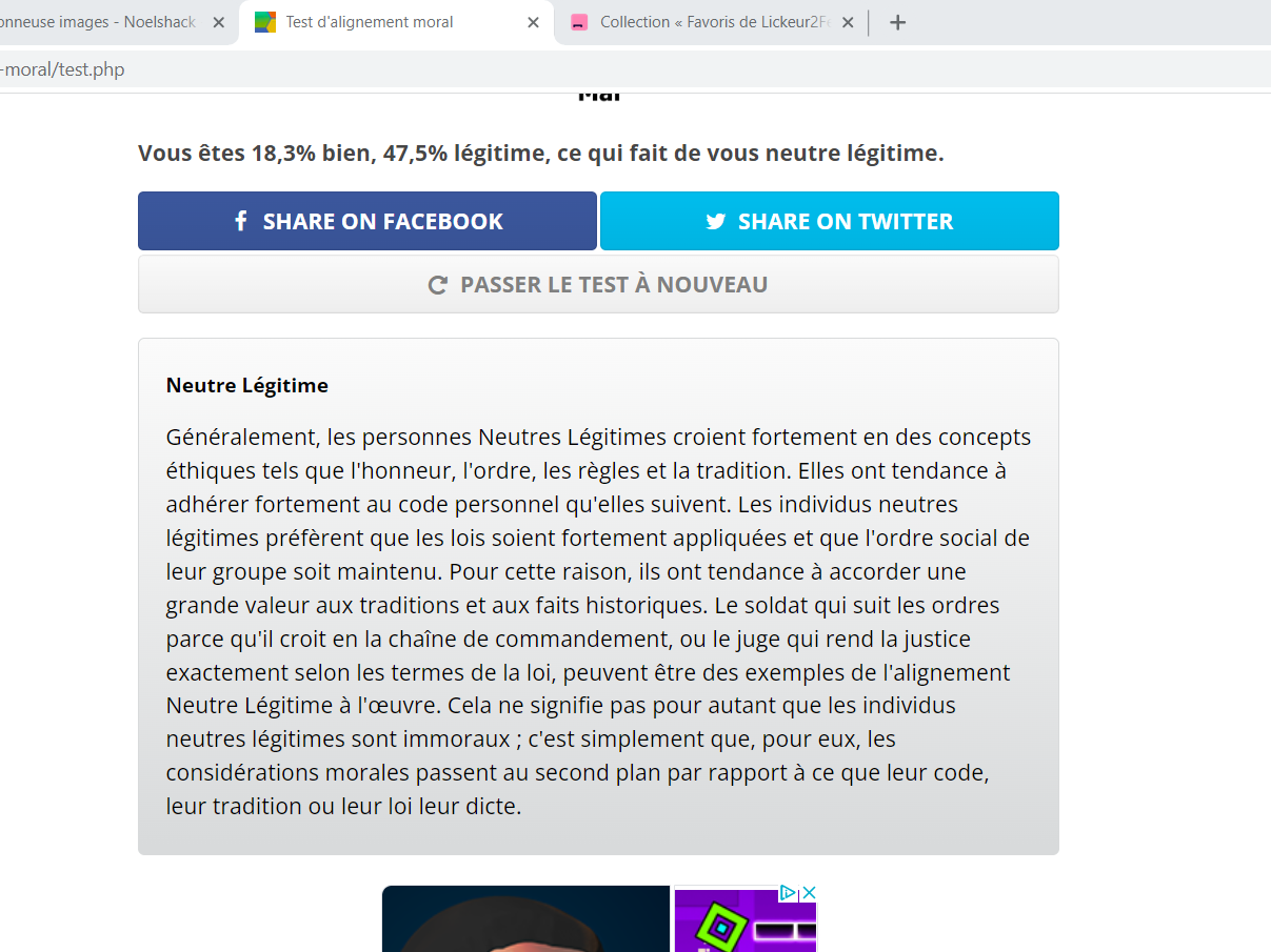 je sais que ce genre de test a pas une grande valeur, mais je pense que ça donne bien une petite idée de notre "moralité", si on répond sincérement.
