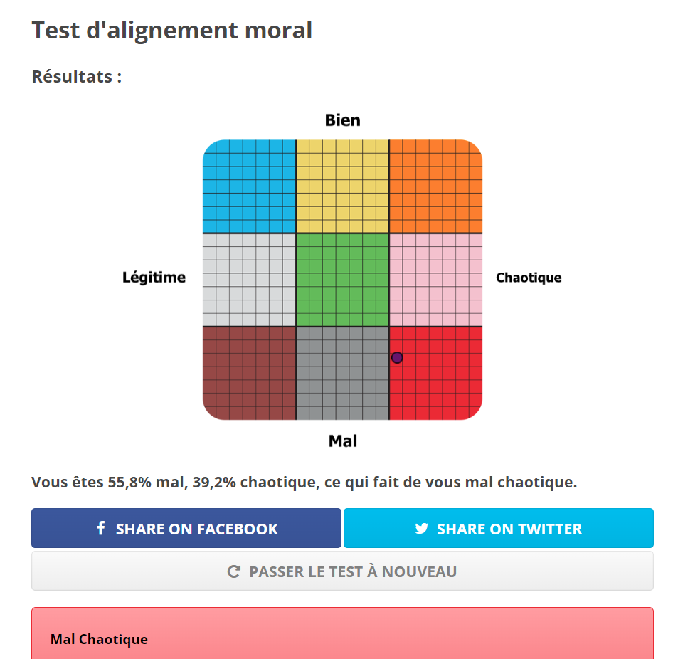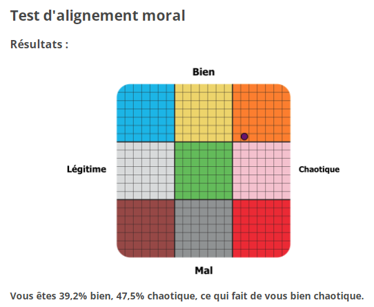 22,5% bien, 39,2% chaotique. Neutre chaotique.