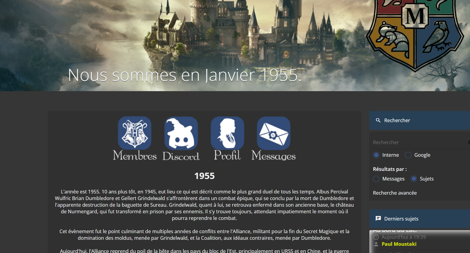 Bienvenue sur le topic de recrutement GLOBAL de Magicae, le serveur RP sur forum sur le thème d’Harry Potter. Oui “encore un” sauf que celui-ci persiste avec le temps, grâce à une équipe de MJ déter et un groupe de joueurs actifs complètement accros (un est même sortit de la boucle JVC pour rejoindre la boucle Magicae