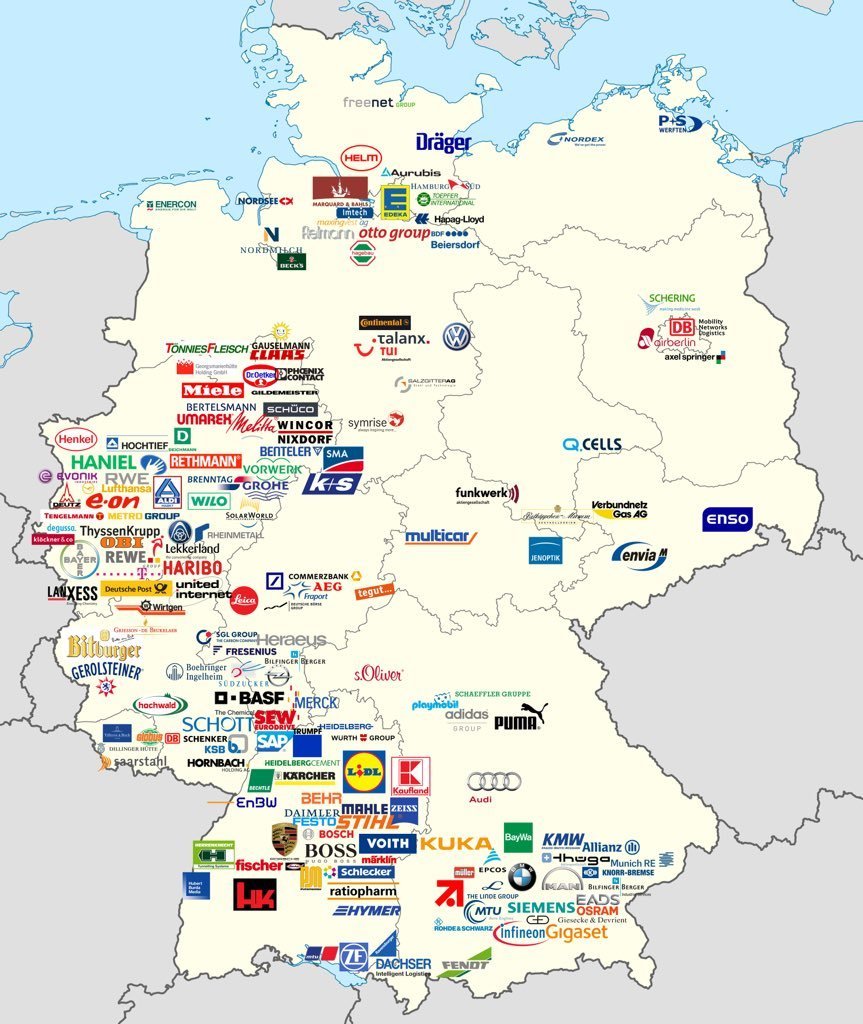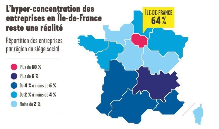 Et encore la différence en Allemagne est du à la separation sinon il y aurait une meilleure rapartition à l'est ( sans oublié qu'a l'est margasins, entreprise d'etat en RDA) alors qu'en france les 2/3 des sieges sont en ile de France. Il faut voir le nombre de diplomé obligés de quitter la region pour bosser sur paris.
