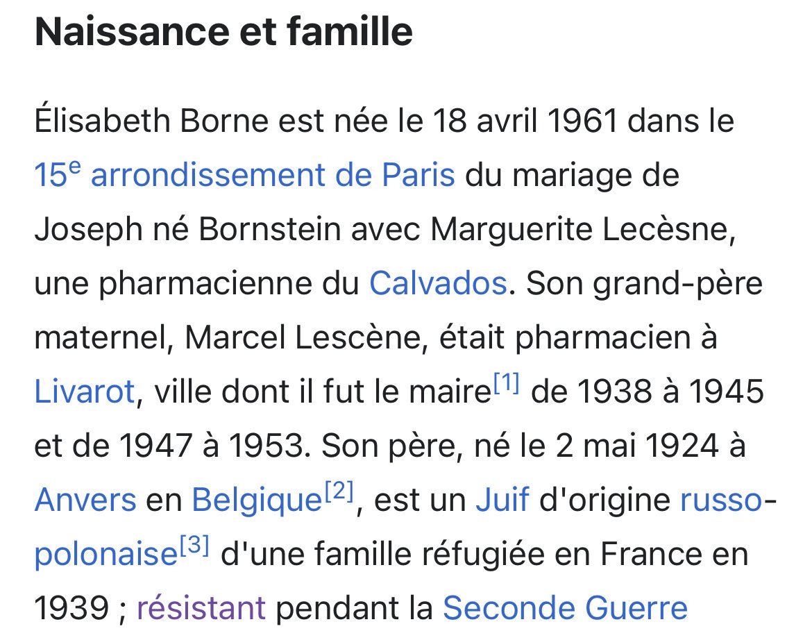 Le 18 mai 2022 à 12:30:56 :Saviez-vous que le véritable nom de notre nouveau premier ministre est Bornstein ?C'est curieux qu'une telle personnalité utilise publiquement un pseudo (Borne).
