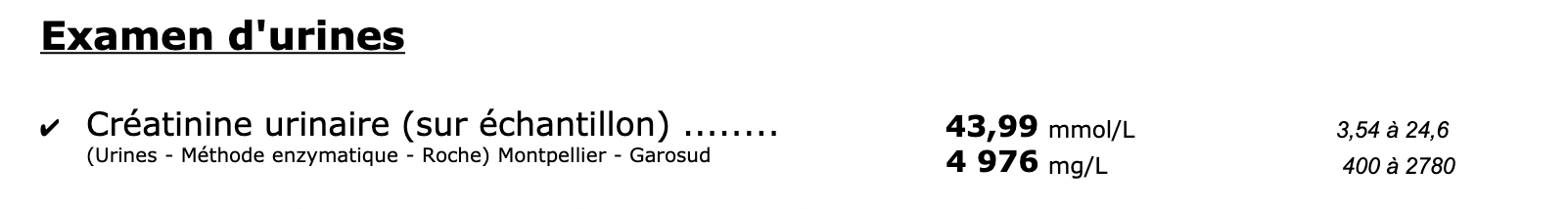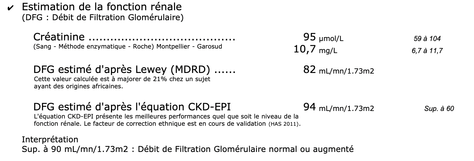 Par contre la créatininémie est bizarrement élevée, alors même que ton DFG est normal. Tu avais fait un gros exercice physique avant ta prise de sang ?