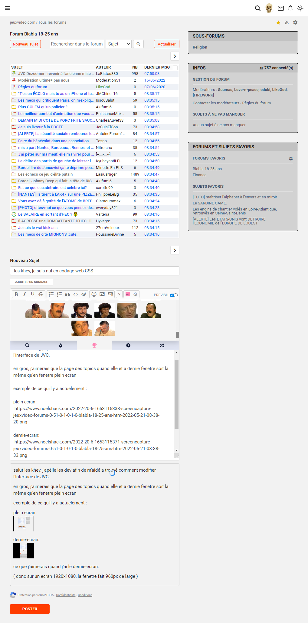 en gros, j'aimerais que la page des topics quand elle et a demie fenetre soit la même qu'en fenetre plein ecran