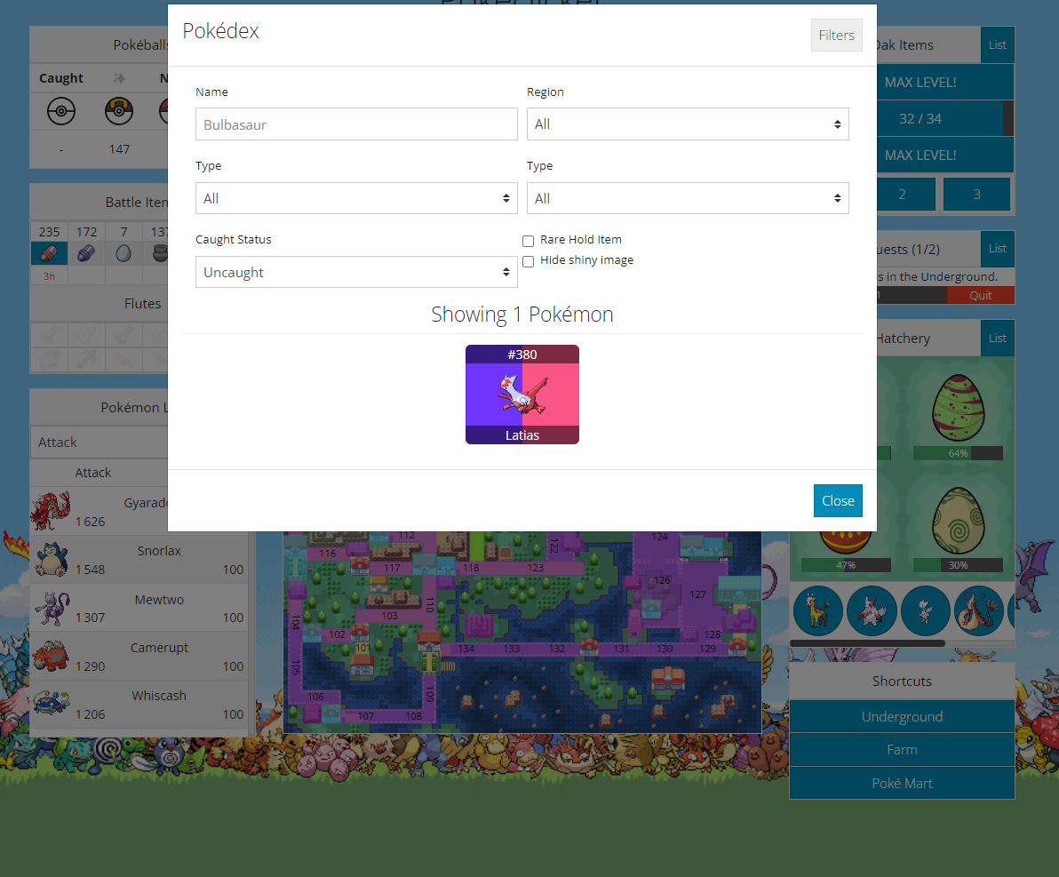 Je suis à Hoenn là, me reste plus qu'à battre le champion de la ligue mais j'ai les doigts en feu à force de cliquer et même comme ça je le vaincs pasFaut farmer les gems/stats avec les gems et les pokéflutes non?
