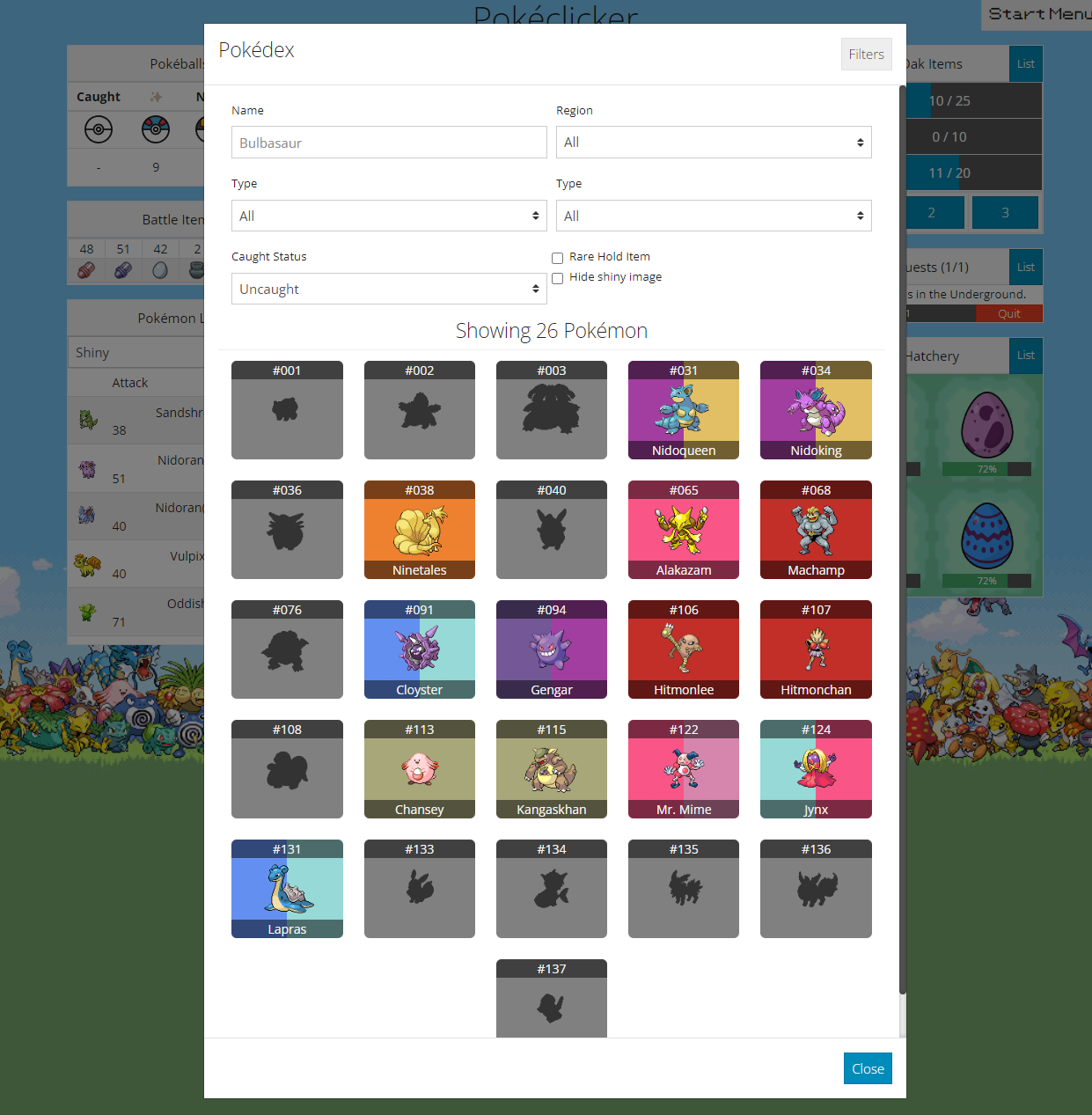 Je dois faire quoi là les kheys ?Je suis à Johto, j'ai capturé tous les pokemons, quand je filtre sur uncaught ça me dit 0, mais le prof Elm me dit qu'il m'en manque 2