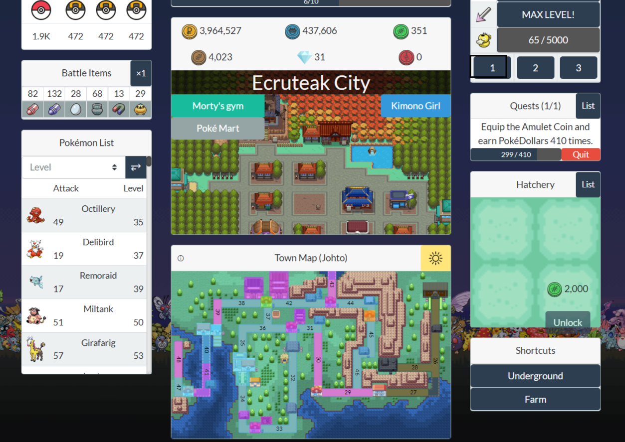 - Grind les quêtes pour acheter des œufs et des pierres evolution (même si les pierres tu peux les avoir dans l'underground)