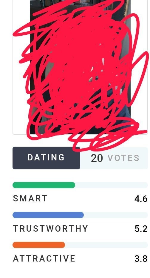 OK donc normal qu'un 3 4 comme moi a 8 dessus sur 3 votes en attractivitébah les meufs sont surnoté donc difficile à dire ...