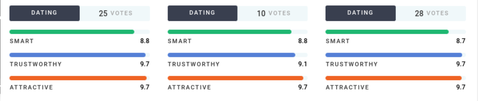 OK donc normal qu'un 3 4 comme moi a 8 dessus sur 3 votes en attractivité
