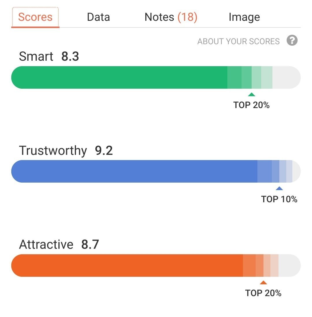 C'est quoi ce monde de baisé, les notes d'inconnus sur vos photos vous rendent plus ou moins intelligent ou digne de confiance ? Ceux qui accordent du crédit à ça ou jouent le jeu sont des taraient