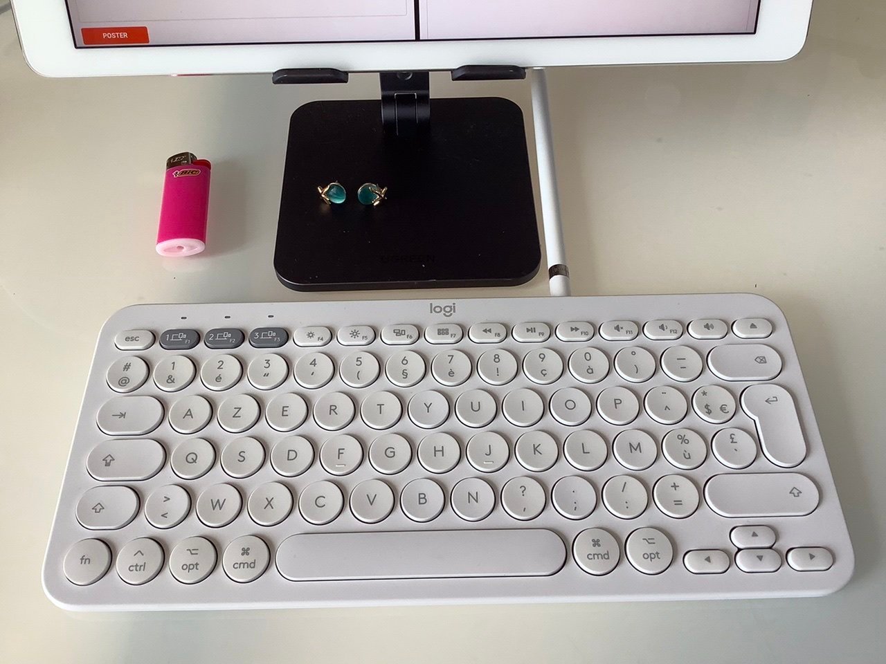 A la limite il lui manque un rétro-éclairage. Mais là je rédige ce message dans le noir, j’ai juste mis le flash led de l’iPad sur le 1er cran derrière et ça diffuse assez de lumière sur la table pour bien distinguer les symboles sur le clavier (avec un coloris noir ou bleu par contre je pense pas que ça marcherait).