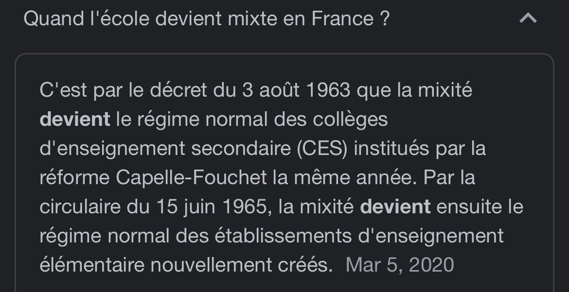 Tu prends un cas qui est clairement avant-gardiste pour l'époque donc pas du tout représentatif de ce que pensaient les gens en moyenne. C'est une meuf qui "veut faire l'école des cadres", très certainement une bourgeoise citadine vu ses codes vestimentaires et sa façon de s'exprimer, donc une meuf qui s'est hissée au-dessus des mœurs et qui a surfé sur la vague du féminisme et de la révolution sexuelle américaine (années 60 pour info, tiens tiens).Donc effectivement l'auteur tu dis de la merde. C'est évident que les mœurs sexuelles ont évolué depuis les années 60.