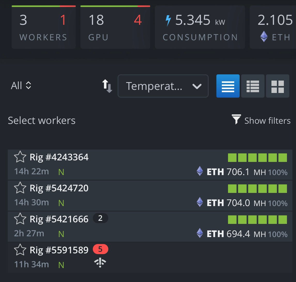 Par contre la renta est en nette chute avec les prix actuels de l'ETH et de l'électricité. Donc faut miner en espérant une remontée du cours avant de revendre, donc pas ouf si tu veux vite rembourser ton investissement.