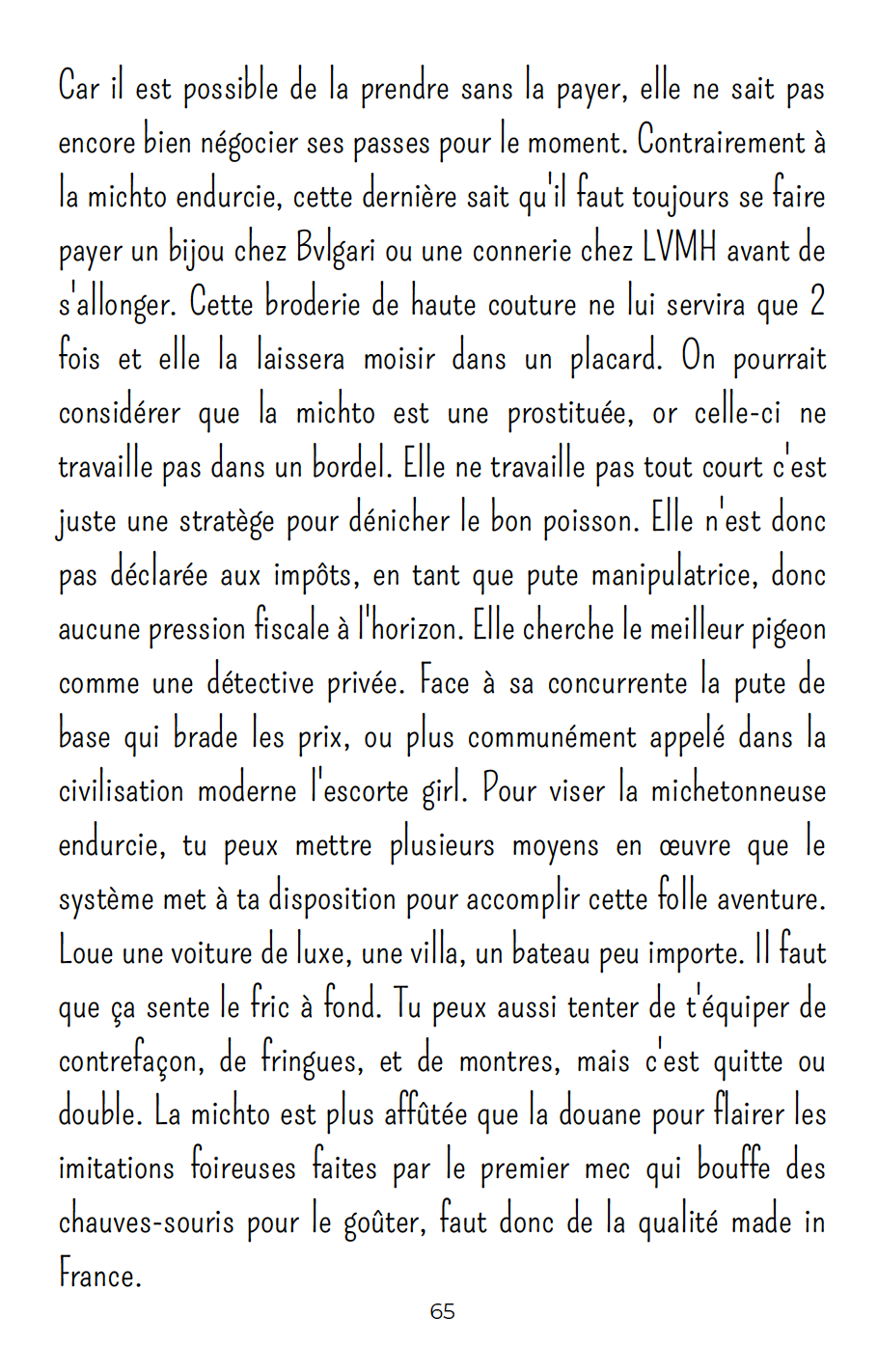 Ayaaa toutes les michtos sans la moindre race qui accourent comme des canards quand l'auteur jette du pain, miskine c'est grave à quel point le fric est à la base de tout![]()