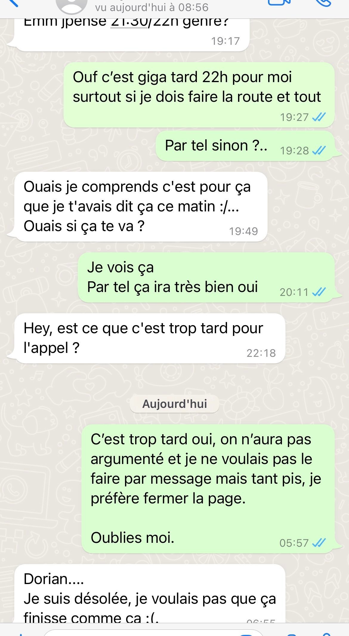 j’attends dimanche, le matin elle me prévient qu’on pourra se voir mais tard (d’après ses story elle a passé la journée avec son pelo)