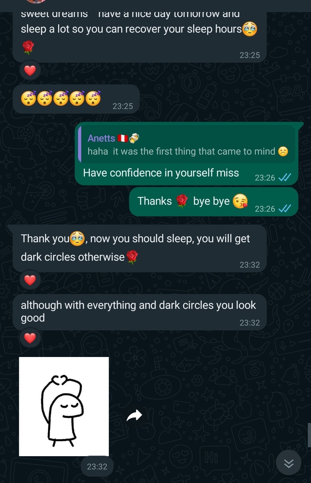 Cependant, elle ne souhaitait plus me contacter car elle souffrait et moi aussi, la distance. On ne s'est jamais appelé en revanche, elle ne m'a jamais donné de message vocaux mais elle me montrait sa famille, elle me montrait sa vie