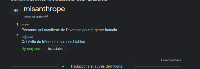 donc quand je vois qui dit " oui j'ai ma petite famille j'ai ma copine " bah c'est pas un misanthrope, c'est juste un cassos asocial qui se donne une consistance