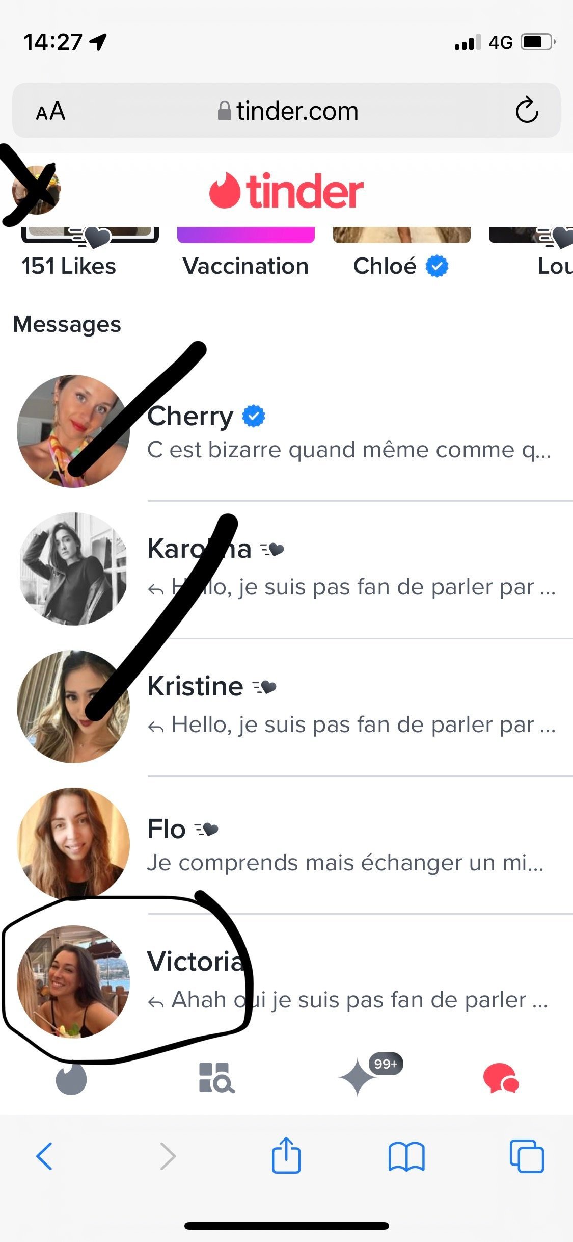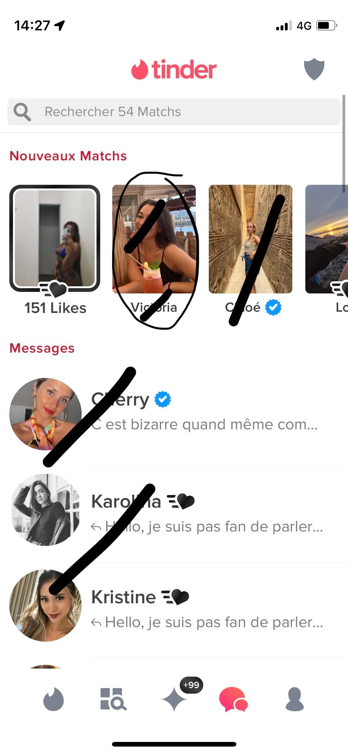 Ah si seulement mon khey, la moitié des matchs ne répond jamais, la moitié de l'autre moitié font les princesses. Au final seulement 15% des matchs emmènent à quelque chose...