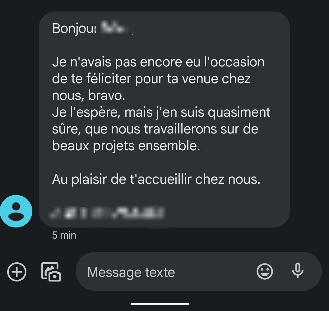 Je comptais prévenir dans la journée la boîte À et voilà le SMS que je viens de recevoir ...