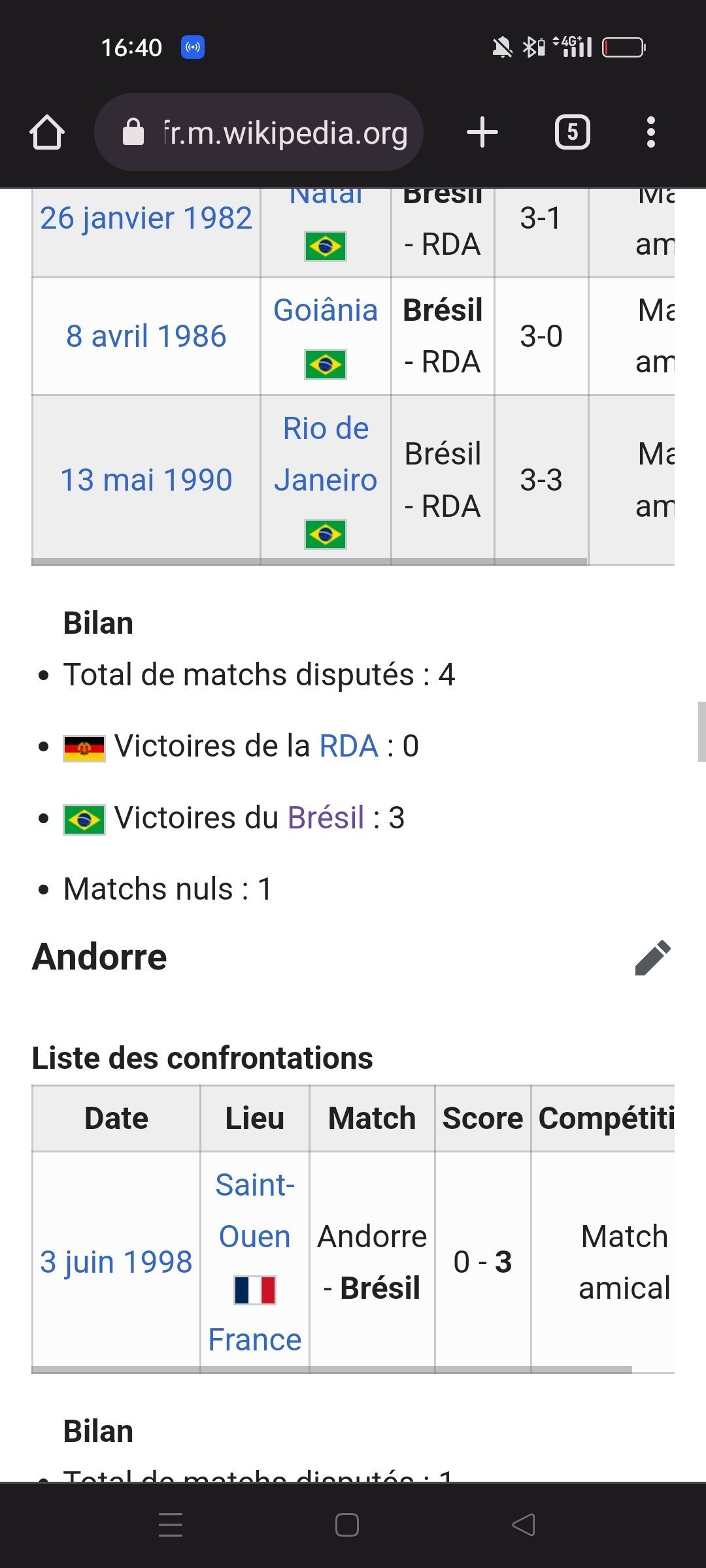 Ensuite palmarès des match entre le Brésil et l'Allemagne de tous les temps :