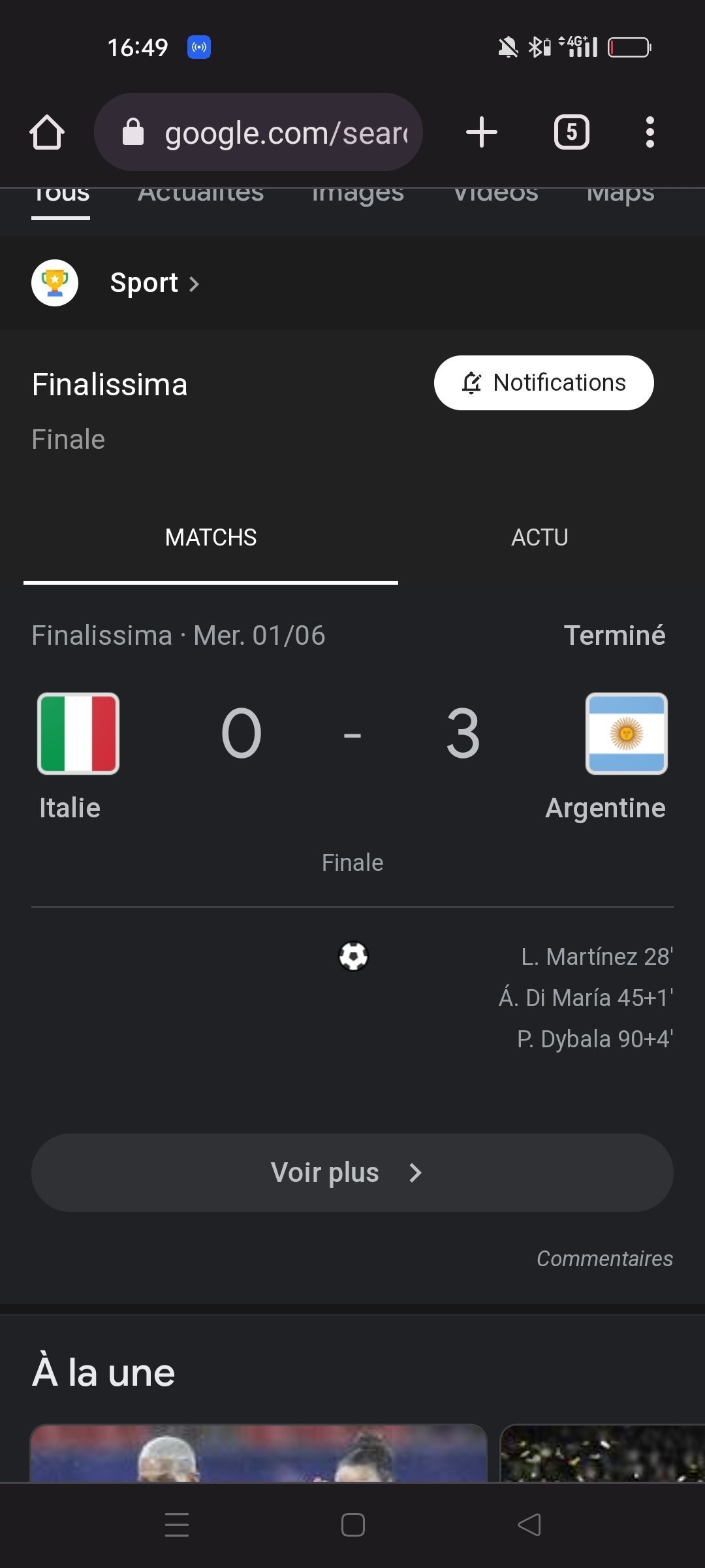 Oui on l'a vue ya deux jours quand l'argentine a bz 3 0 le champion européen en titre