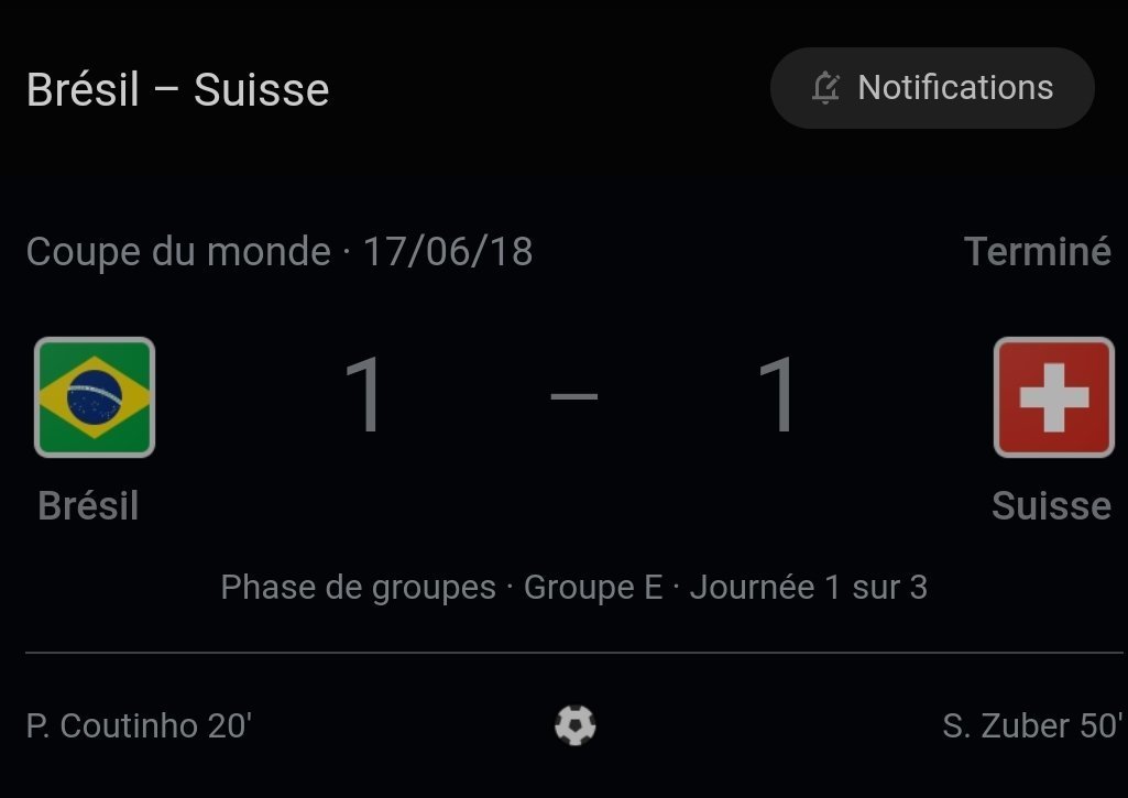 Les Brésilix ont dominé tout le long, le football Brésilien est au dessus du football Suisse, rappel moi le palmarès de l'équipe de Suisse stp ?