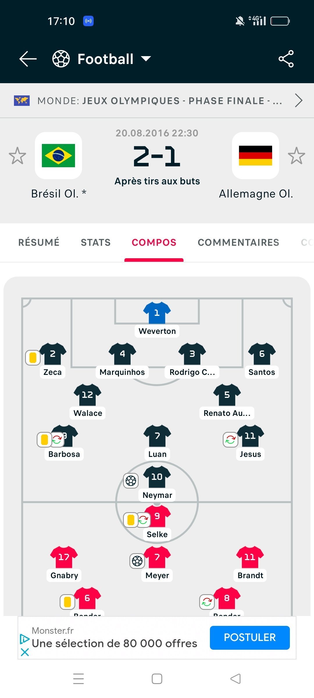 Les deux derniers matchs de Allemagne Brésil dont une finale olympique![]()
