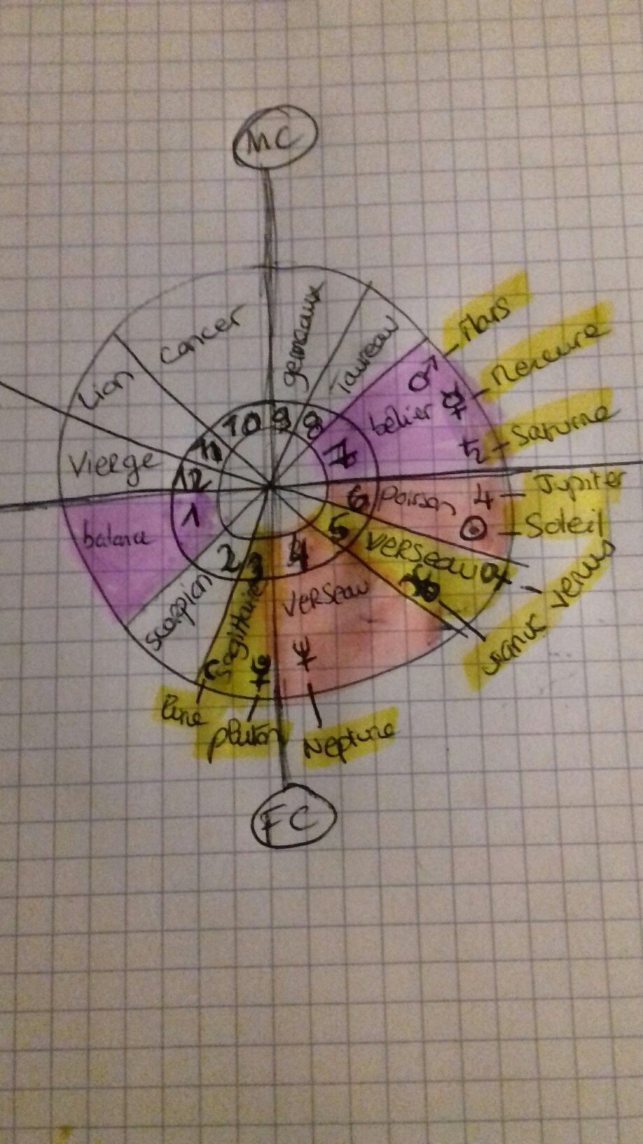 J'ai fait à main levé ce à quoi pourrait ressembler ton thème natal, je vais me baser sur lui: