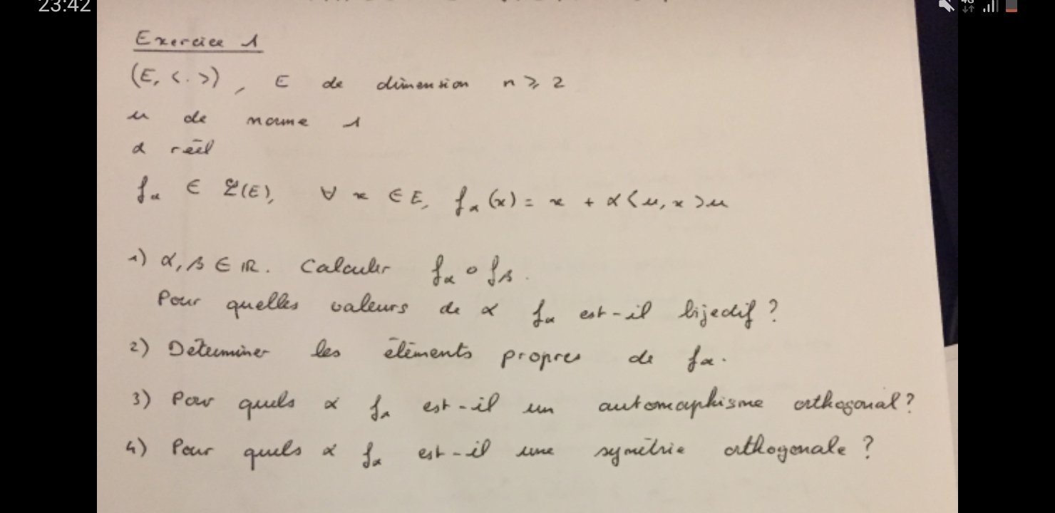 À l'aide l'élite j'ai besoin de votre aide je bug sur la question j'ai pas compris comment c'est posé, u est un endomorphisme ou un vecteur de E ?