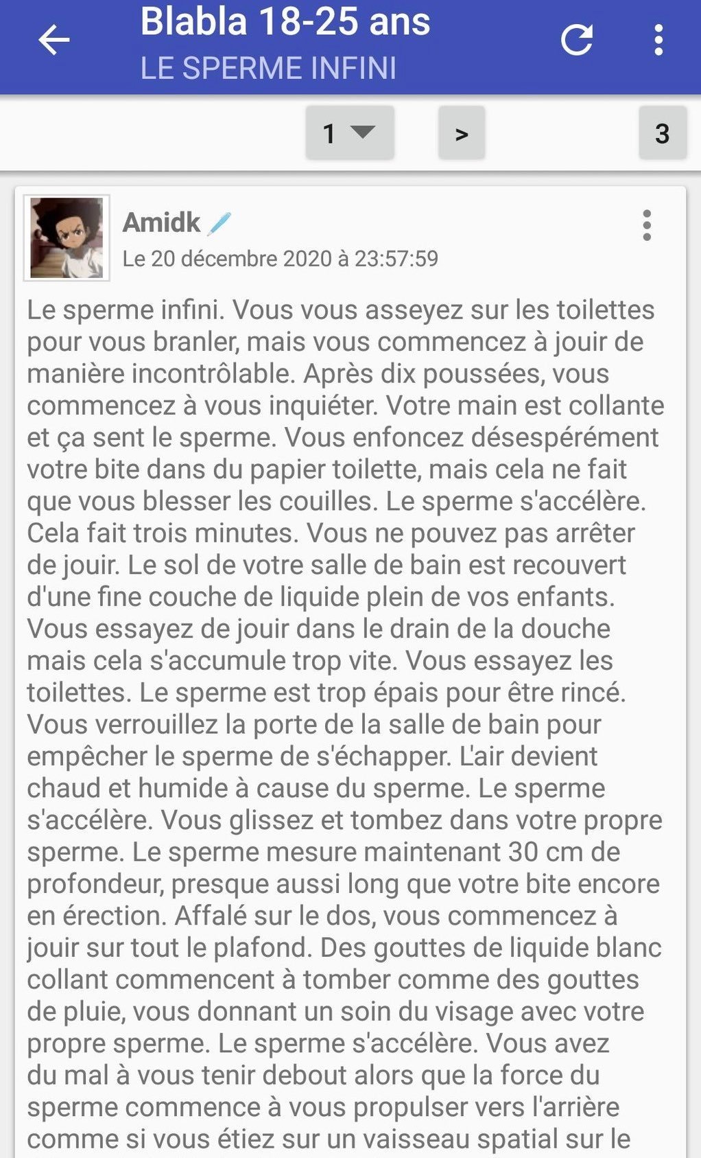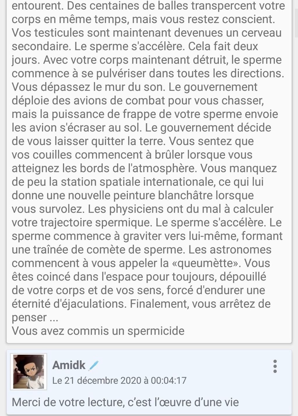Ahí génial khey, ça me rappelle un peu le pavé "le sperme s'accélère" (si quelqu'un a un lien je suis preneur)Cimer khey. Jamais vu ce pavé, ça m'intéresse