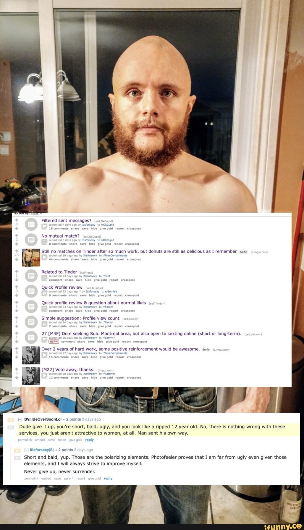 Bref l'OP est une énorme blague qui a ZERO handicaps physiques, qui a fait ZERO efforts dans sa vie et qui veut qu'on l'admire pour son courage vs. des soit-disant incels sans couilles.