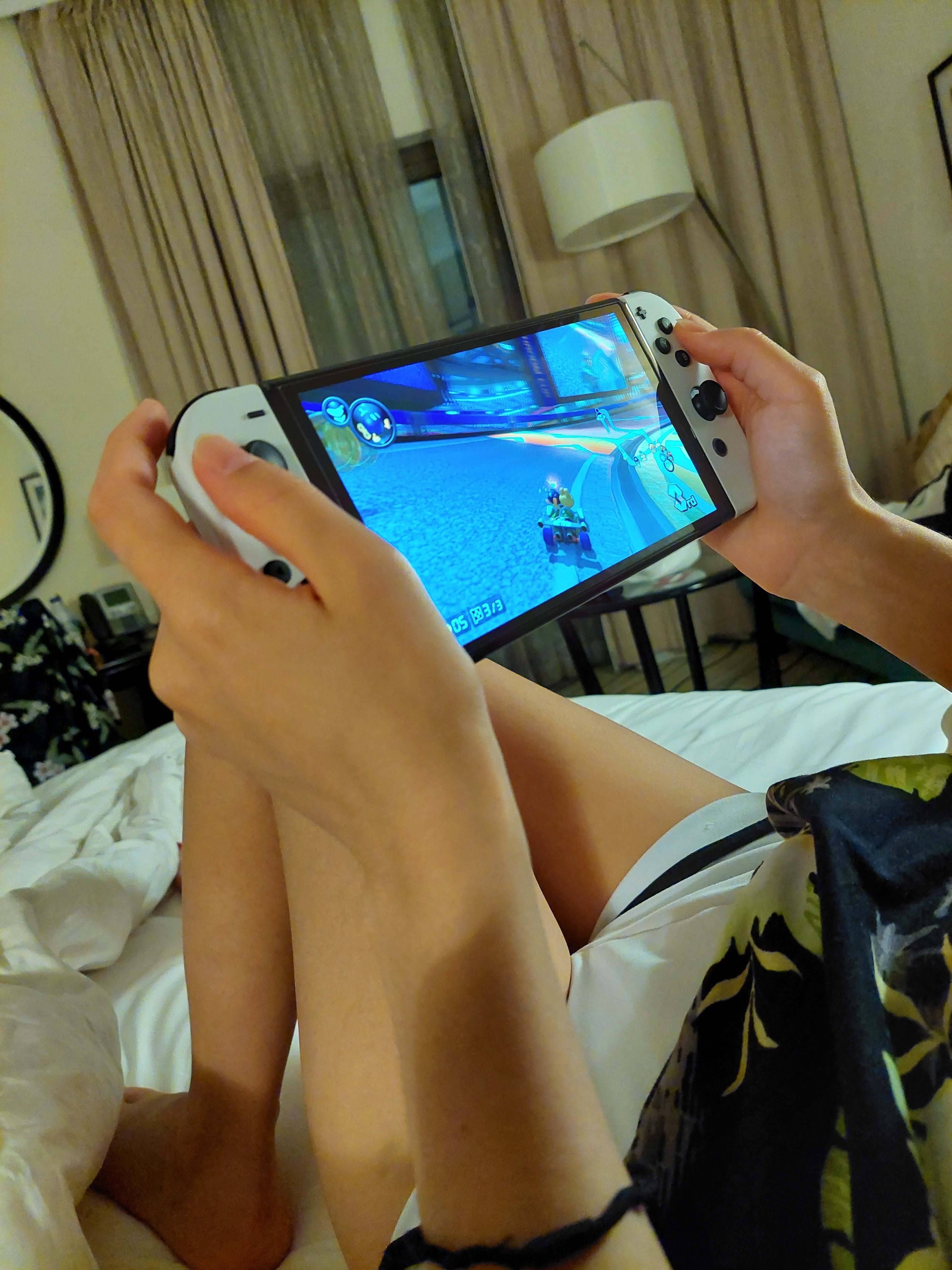 Elle adore jouer à Mario Kart, on boit de l'eau plate et on mange des M and hèms
