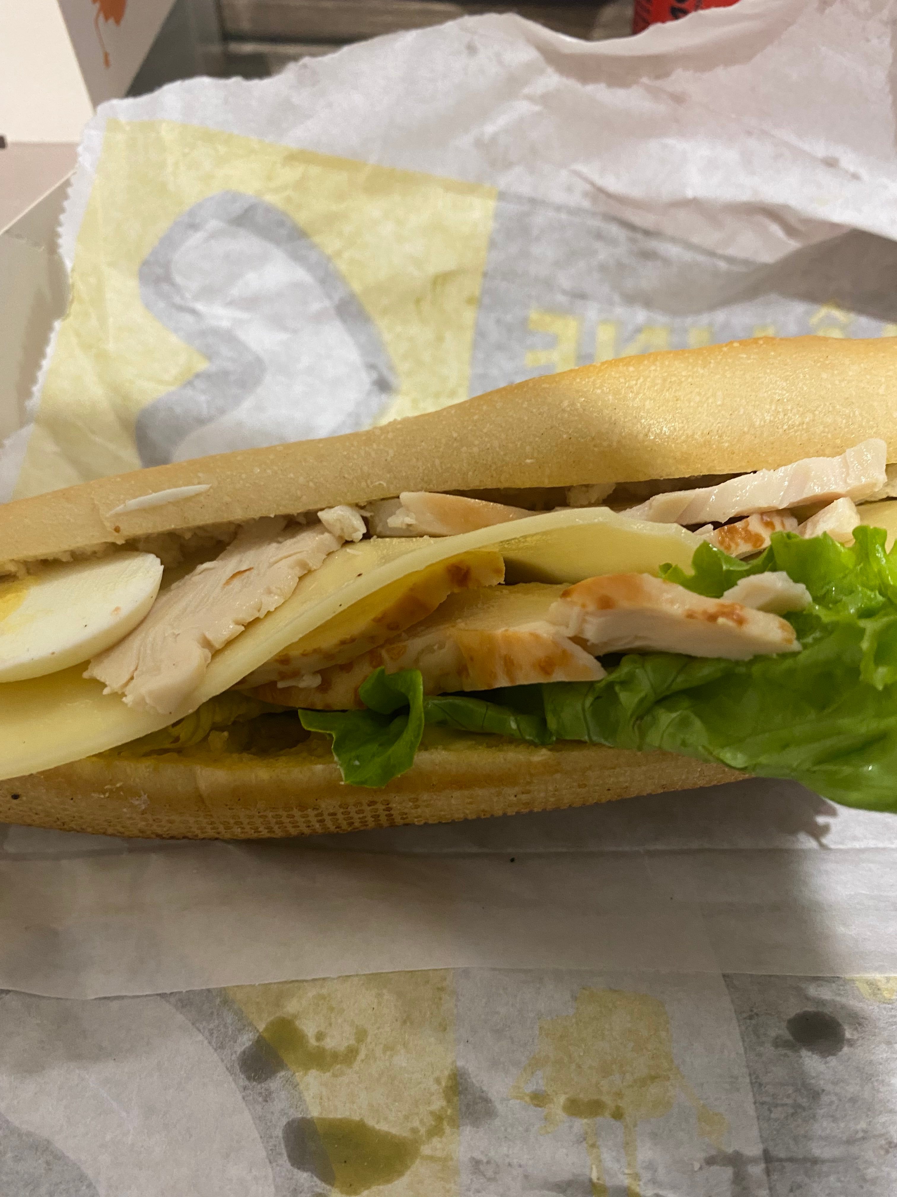 Bordel le douiche a l'air vraiment nul je suis déçus, finalement la tartelette n'était pas de trop et le mot écrit au stylo sur l'emballage.. ok pourquoi pas mais si c'est pour servir un sandwich de cet acabit je dis non.