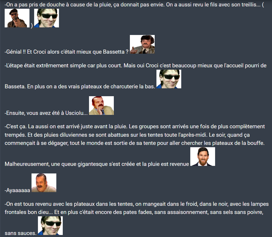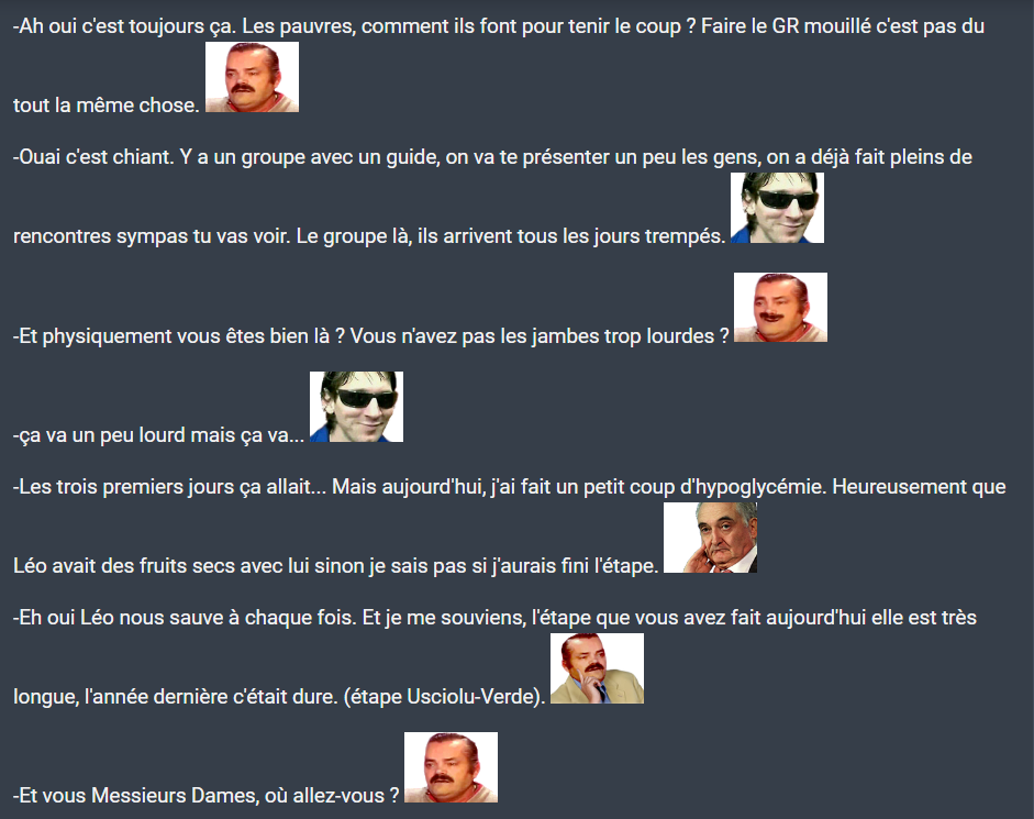 -L'étape était extrêmement simple car plus court. Mais oui Croci c'est beaucoup mieux que l'accueil pourri de Basseta. En plus on a des vrais plateaux de charcuterie la bas.