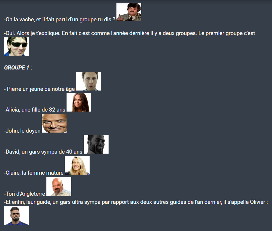 -Oui. Alors je t'explique. En fait c'est comme l'année dernière il y a deux groupes. Le premier groupe c'est