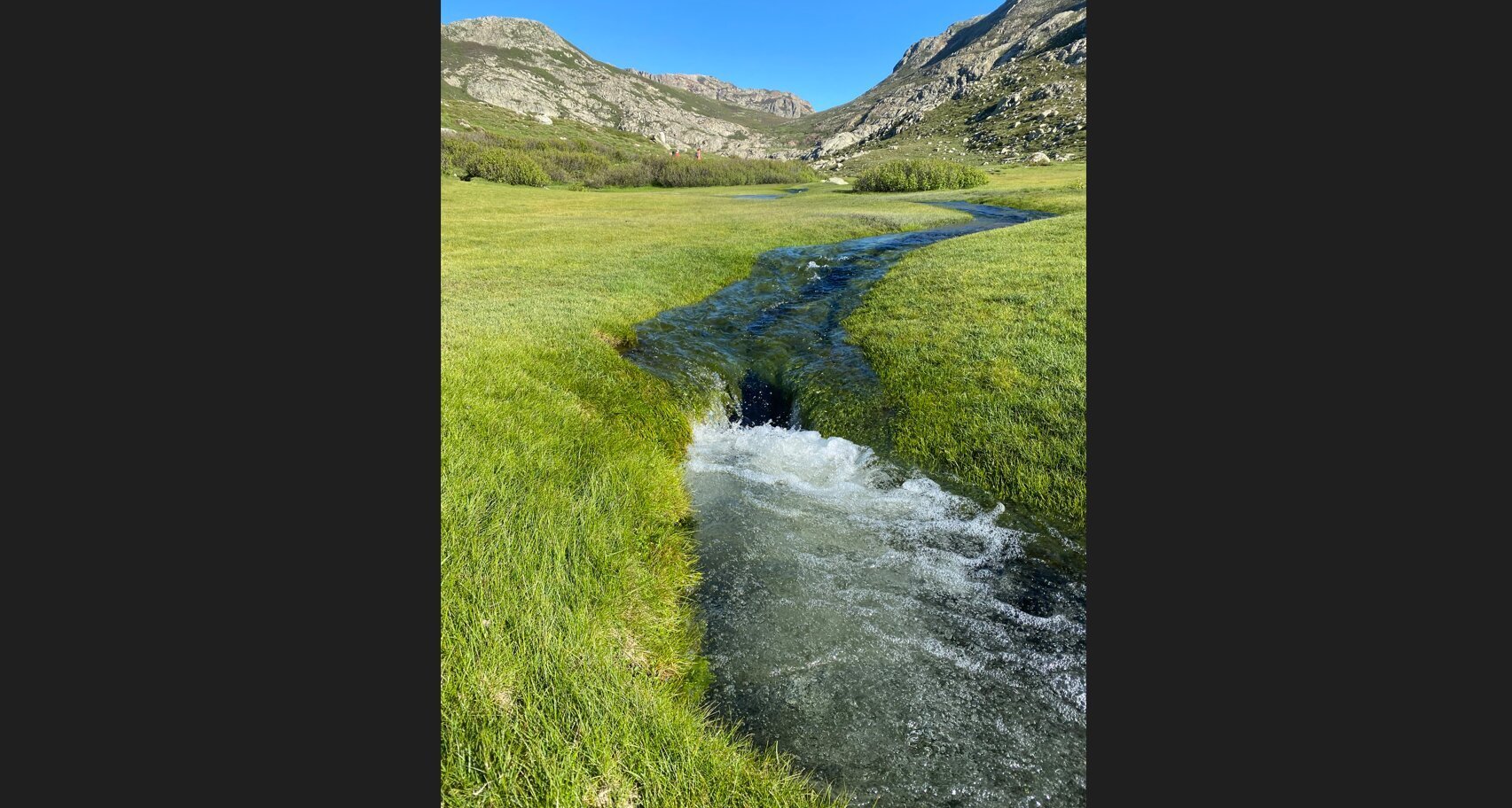 On écoute Léo et ça fait même du bien de marcher pieds nus. Les herbes sont un peu pointues donc ça picotte un peu mais surtout c'est GLACIAL. Le sol est gorgée d'eau, tu marches dans une énorme pataugeoire, liée aux différentes bassines. C'est l'eau de la fonte des neiges donc les pieds sont congelés. Même avec le temps, ça ne passe pas, le sang circule très vite c'est très douloureux mais on fait une petite pause sur un rocher. Une petite pause graine.