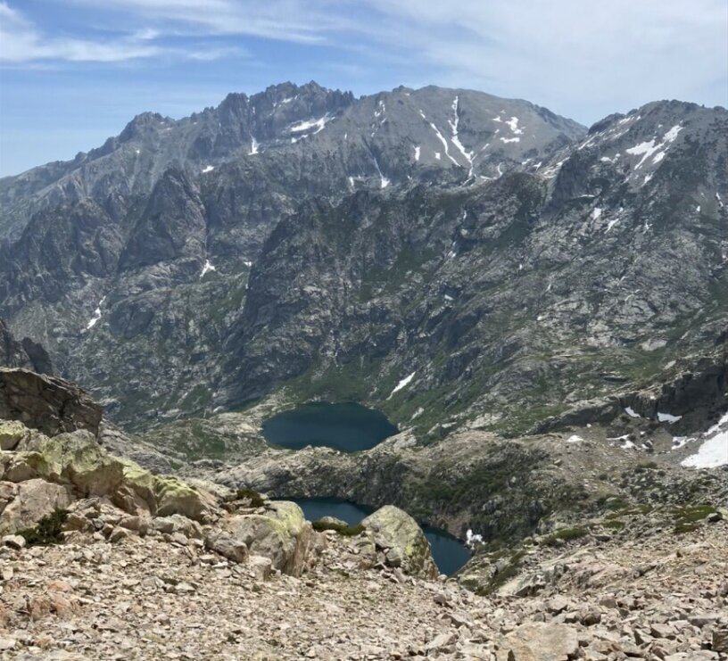 Et effectivement, la descente est très raide. Raide et difficile, mais avec une vue imprenable sur le premier lac que je croise au GR20.